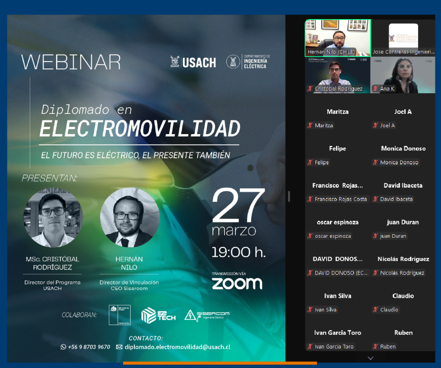 Noticias 28 Mar 2025 Webinar DIE destacó la trayectoria del Diplomado de Electromovilidad y su liderazgo en la transición energética El Diplomado en Electromovilidad del Departamento de Ingeniería Eléctrica (DIE) de la Universidad de Santiago de Chile (USACH) llevó a… Ashley Gómez Ceballos