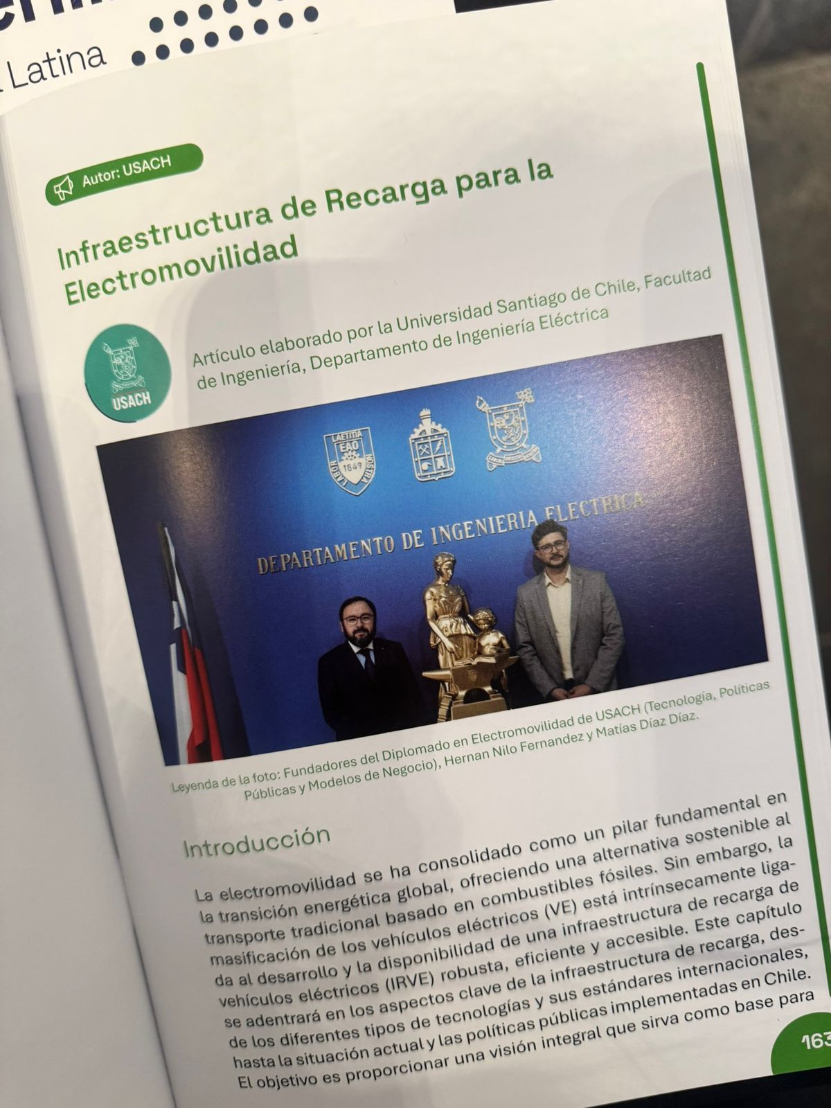 El Departamento de Ingeniería Eléctrica (DIE) de la Universidad de Santiago de Chile (USACH) participó activamente en este proceso a través de la elaboración del capítulo “Infraestructura de Recarga para la Electromovilidad”, donde se abordaron los aspectos clave del desarrollo de una Infraestructura de Recarga de Vehículos Eléctricos (IRVE) robusta, eficiente y accesible.