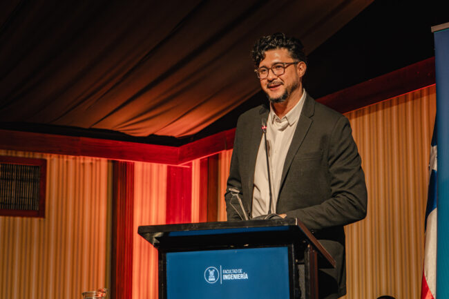 Durante su intervención, el Dr. Díaz valoró el crecimiento del sistema de innovación de la universidad y el rol de la Facultad de Ingeniería en este proceso. “La primera ceremonia de estos premios fue más pequeña, y eso refleja cómo ha crecido el sistema de innovación de nuestra universidad. Este año se adjudicaron 19 proyectos Fondecyt, de los cuales 10 corresponden a la Facultad de Ingeniería. Hemos crecido y debemos seguir avanzando”, afirmó.