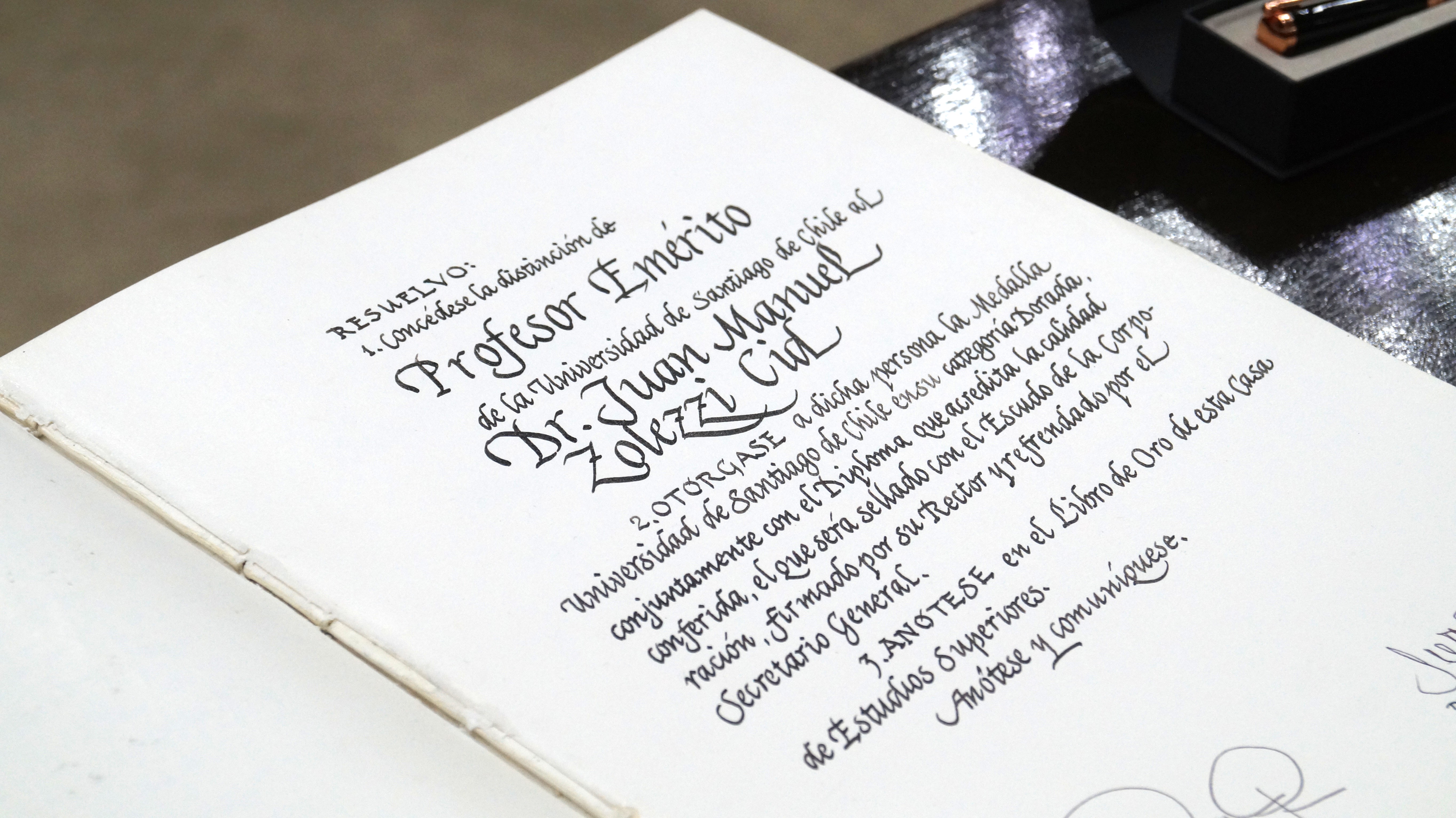 El académico del Departamento de Ingeniería Eléctrica y ex rector Dr. Juan Manuel Zolezzi Cid, recibió la distinción de Profesor Emérito por parte de la Universidad de Santiago de Chile, en reconocimiento a sus más de 50 años de trayectoria en la educación superior y su valioso aporte al fortalecimiento de la universidad pública.
